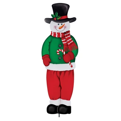Dressed in bright holiday colors, these festive snowman stakes are the perfect addition to your outdoor holiday décor. Each smiling snowman wears a colorful outfit in red and green with holly accents. The stakes are easy to anchor anywhere in your yard or garden. Easy assembly req. Metal. Each is approx. 8 3/4″L x 32″H. Choose: Boy or Girl.