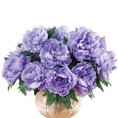 Beautiful bunches of peonies make a dramatic statement placed in your garden or used in a planter or vase (not included). Big blooms in pretty purple, deep pink or bright white always look as lovely as the day you “planted” them. Use separately for smaller bouquets or all together for a bold and beautiful arrangement (as shown). Polyester. Set of 3 bushes, each stands 19″ high. Available in Deep Pink, White or Purple.