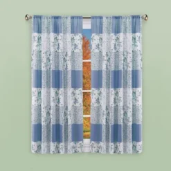 Dress your windows with these charming, patchwork style curtains. They feature a variety of floral designs in your choice of blue, burgundy, grey or sage green. Rod pocket tops. Machine wash. Polyester. Imported. Choose: Blue, Grey, Burgundy or Sage. Available in: Valance (15″L x 52″W), 63″ Panel (63″L x 52″W) or 84″ Panel (84″L x 52″W).