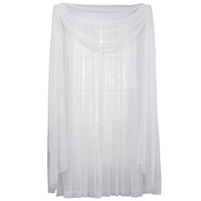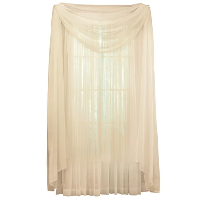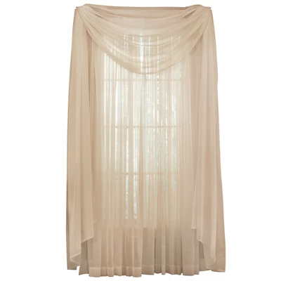 Now you can have a designer-look quickly and easily with this classic window scarf. The sheer fabric lets light in, while also adding privacy. Machine wash. Polyester; imported.Available in 8 colors: Blue, Burgundy, Chocolate, Cream, Lilac, Sage, Taupe, White or Rose. Measures 215″ x 60″.